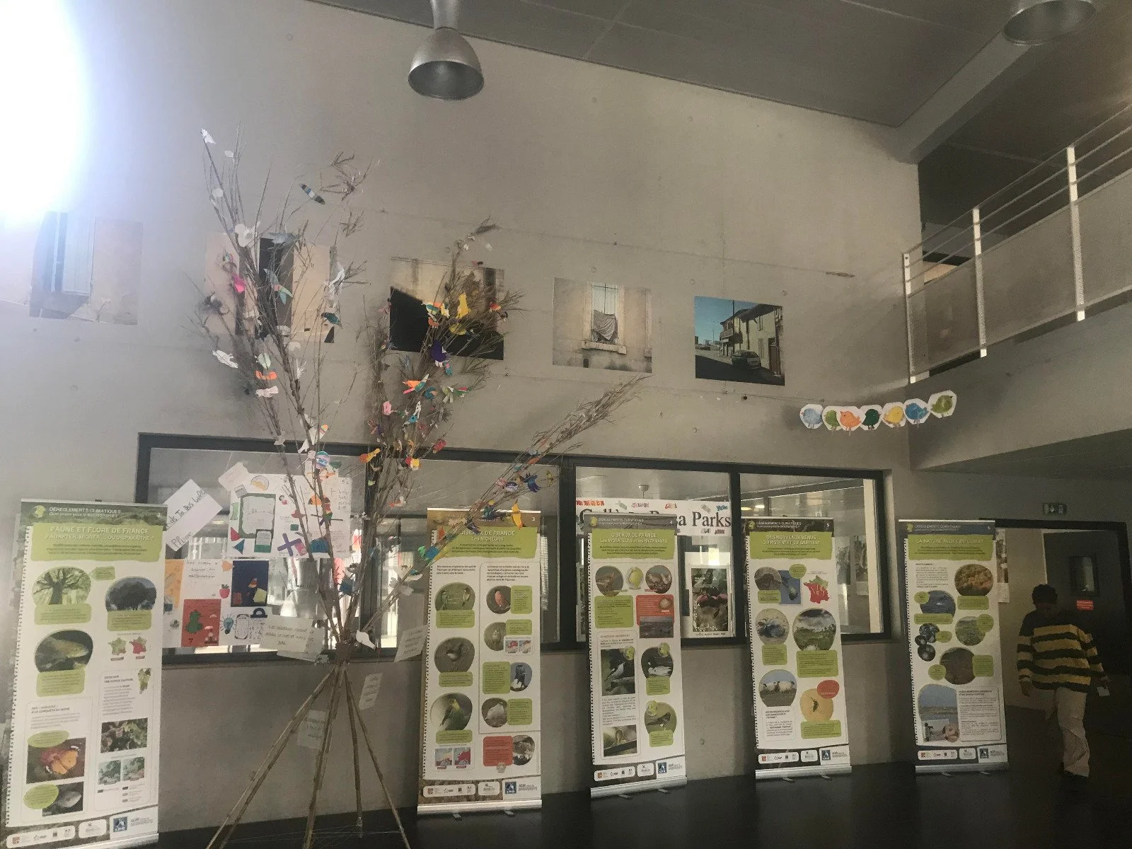 a exposé des œuvres dans la cour de l’école, sur le terrain de Basket.